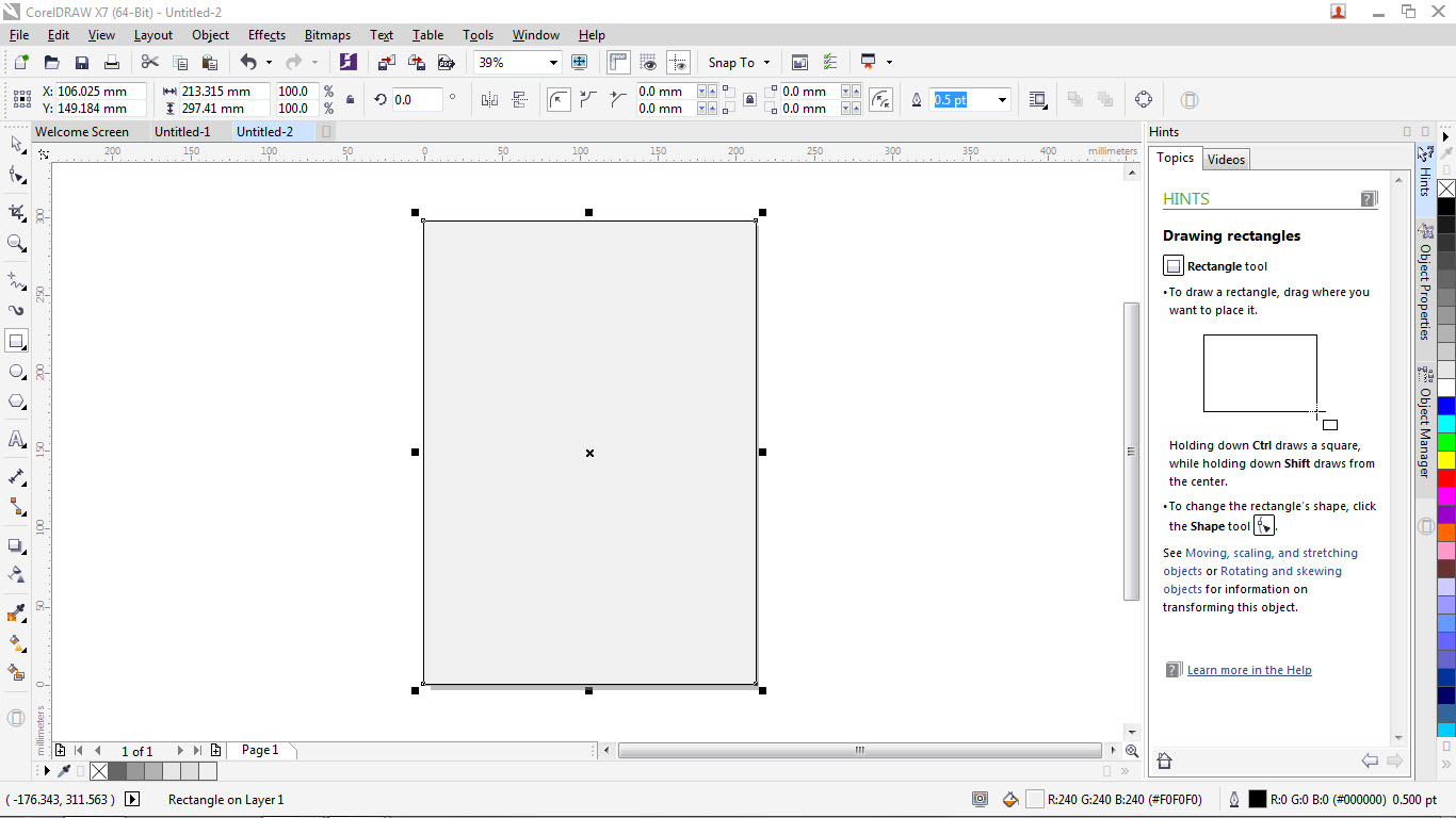 9. Beri warna putih dan hilangkan outline-nya dengan Color Palette selanjutnya atur transparansi objek lingkaran dengan Transparency Tool di Toolbox